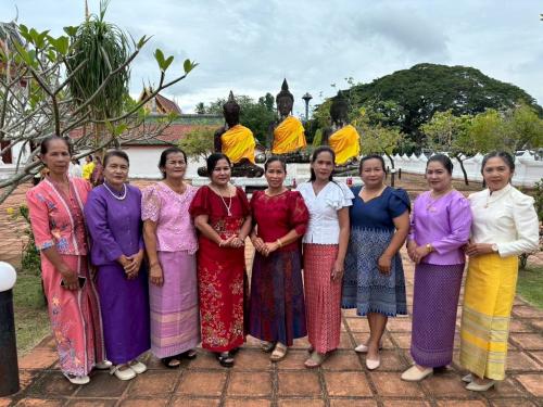 เวลา14.00น. เยี่ยมชมพิพิธภัณฑ์ผ้าไหมบ้านพุมเรียง ตำบลพุมเรียง อำเภอไชยา จังหวัดสุราษฎร์ธานี โดยได้รับเกียรติจากนางหวันม๊ะ นุ้ยหมีม ครูศิลป์ของแผ่นดิน ผู้ก่อตั้งพิพิธภัณฑ์ฯ นำเยี่ยมชมพิพิธภัณฑ์