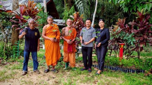 พช.ไชยา ร่วมกับประธานเครือข่ายโคก หนอง นา อำเภอไชยา ลงพื้นที่มอบพันธุ์กล้าไม้ให้แก่วัดในพื้นที่ ตำบลปากหมาก อำเภอไชยา จังหวัดสุราษฎร์ธานี